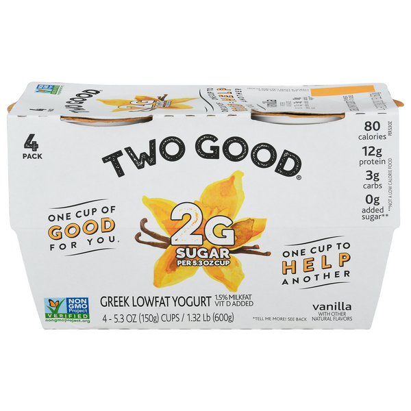 Save On Two Good Greek Yogurt Vanilla Low Fat Low Carb Keto Friendly 4 Ct Order Online Delivery Stop Shop